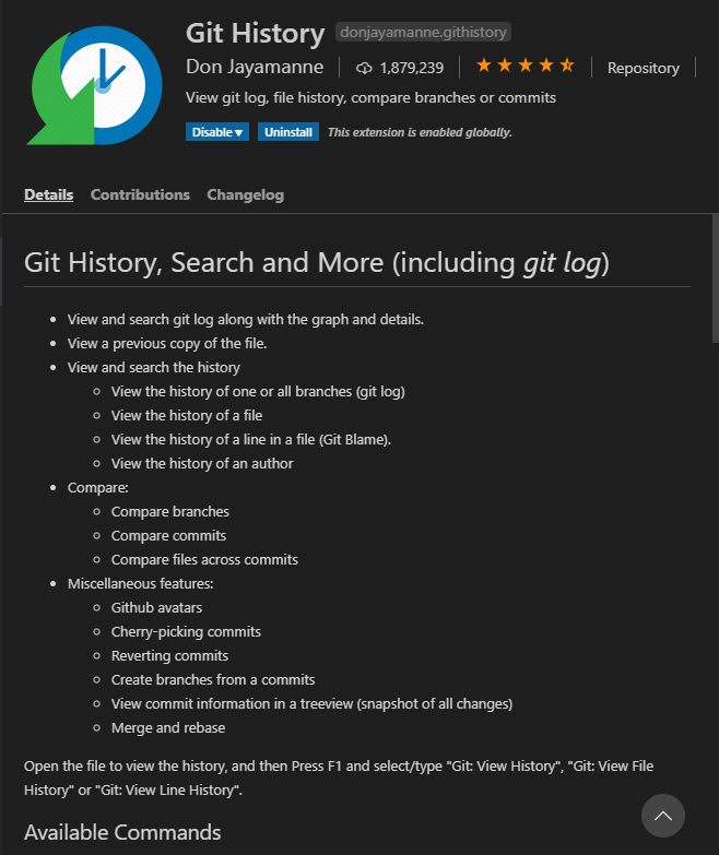 OverviewQ & ARating & Review Git History, Search and More (including git log) View and search git log along with the graph and details. View a previous copy of the file. View and search the history View the history of one or all branches (git log) View the
