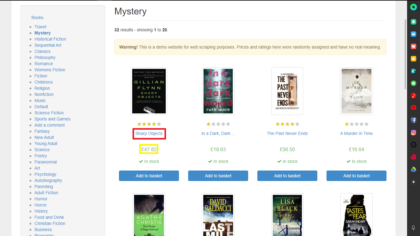 url = 'http://books.toscrape.com/catalogue/category/books/mystery_3/index.html'