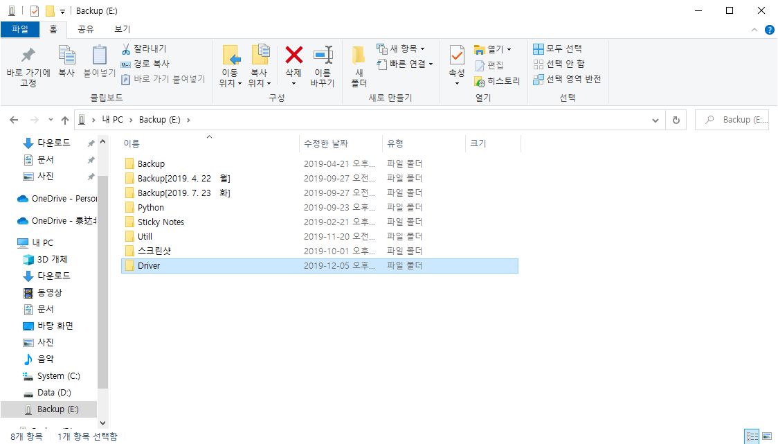이때를 위해 현재 사용중인 Driver를 백업 하고 추후 포맷 하고 사용할 수 있는 점을 알아본다.