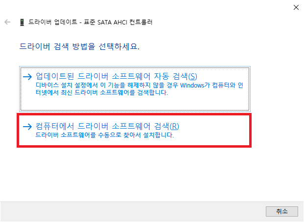 1. 컴퓨터에서 드라이버 소프트웨어 검색