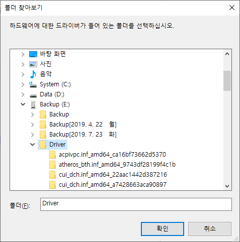 2. Dism /online /Add-Driver /Driver:백업폴더 /recurse