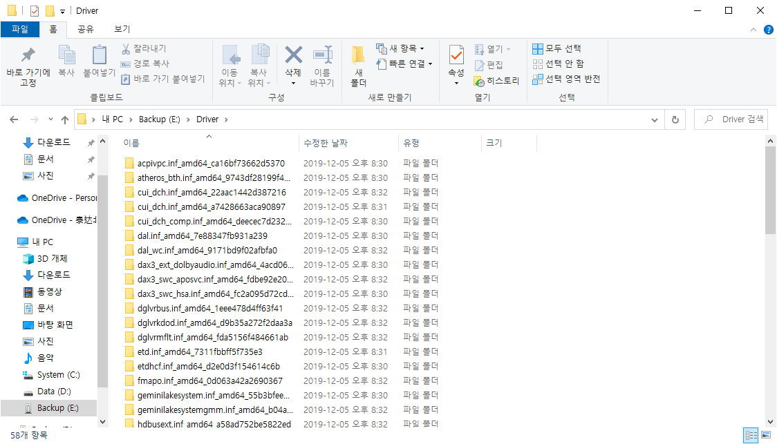 이때를 위해 현재 사용중인 Driver를 백업 하고 추후 포맷 하고 사용할 수 있는 점을 알아본다.