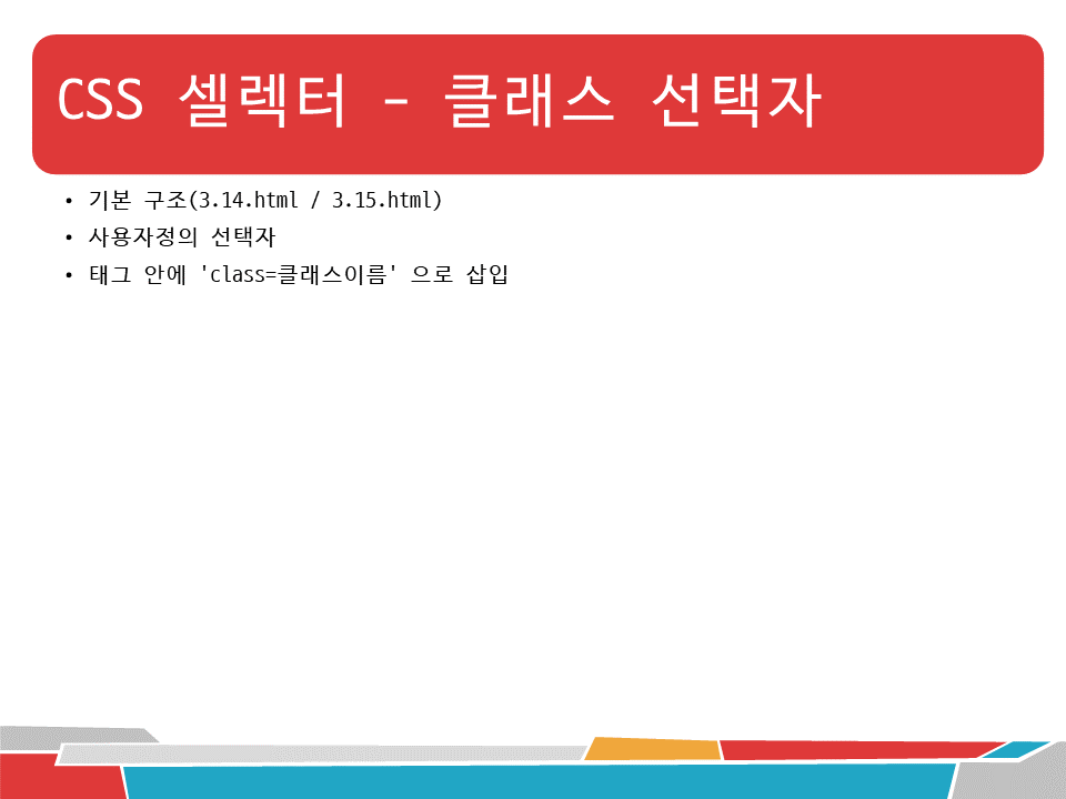 • 태그 안에 'class=클래스이름' 으로 삽입