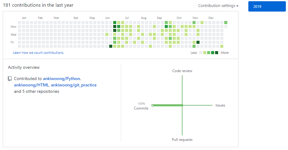 내년 목표 중 한개는 바로 1일 1커밋 잔디 심기로 정했다.