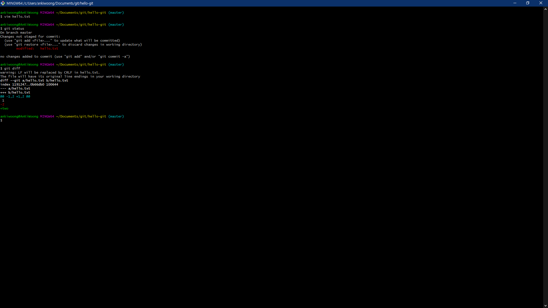 : 작업트리에 있는 파일과 스테이지에 있는 파일을 비교