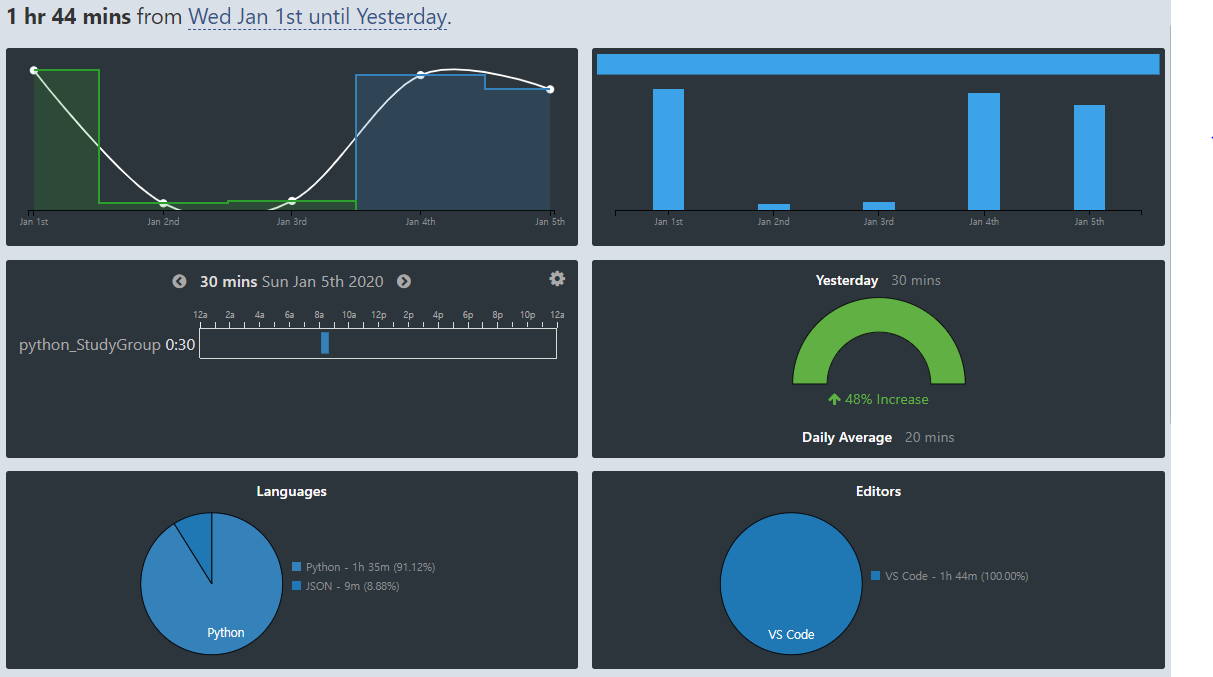 [WakaTime]Week 4 of December(19.12.23 ~ 19.12.29) (0) | 2019.12.29 |