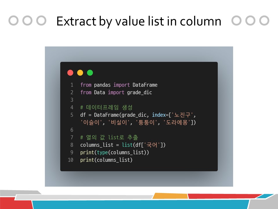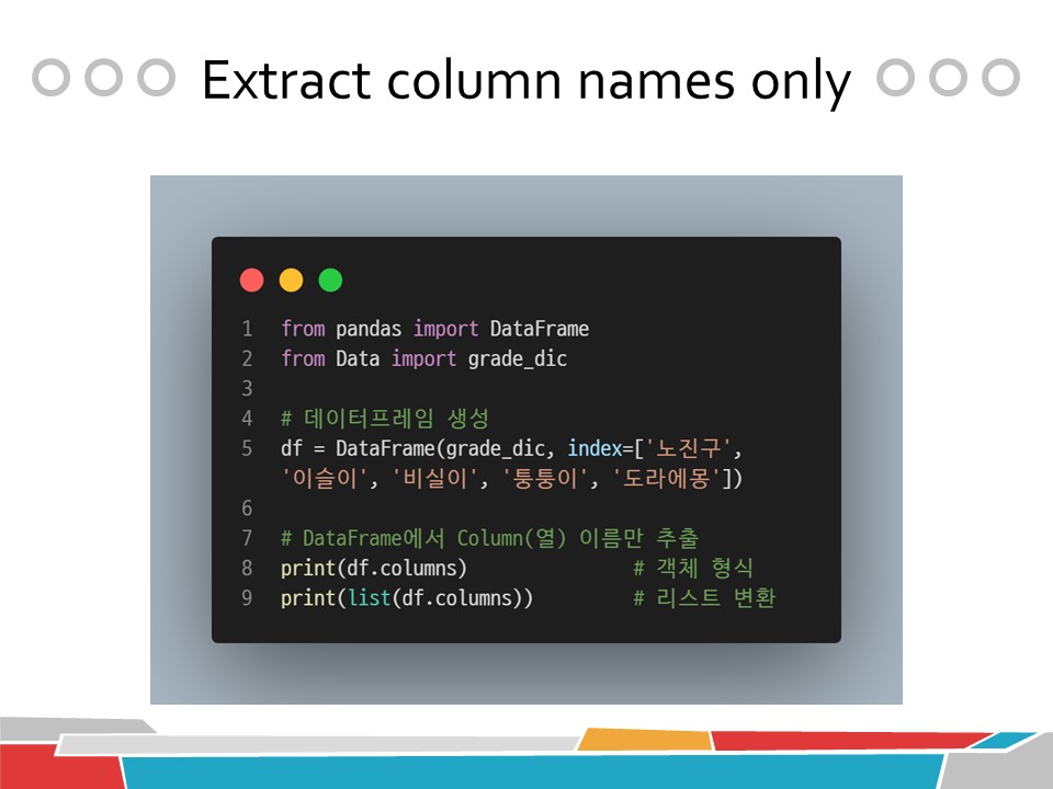# 컬럼의 이름을 갖고 있는 리스트를 지정