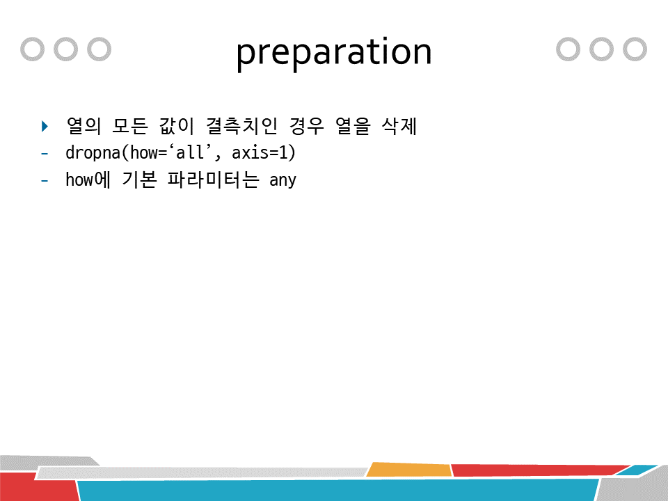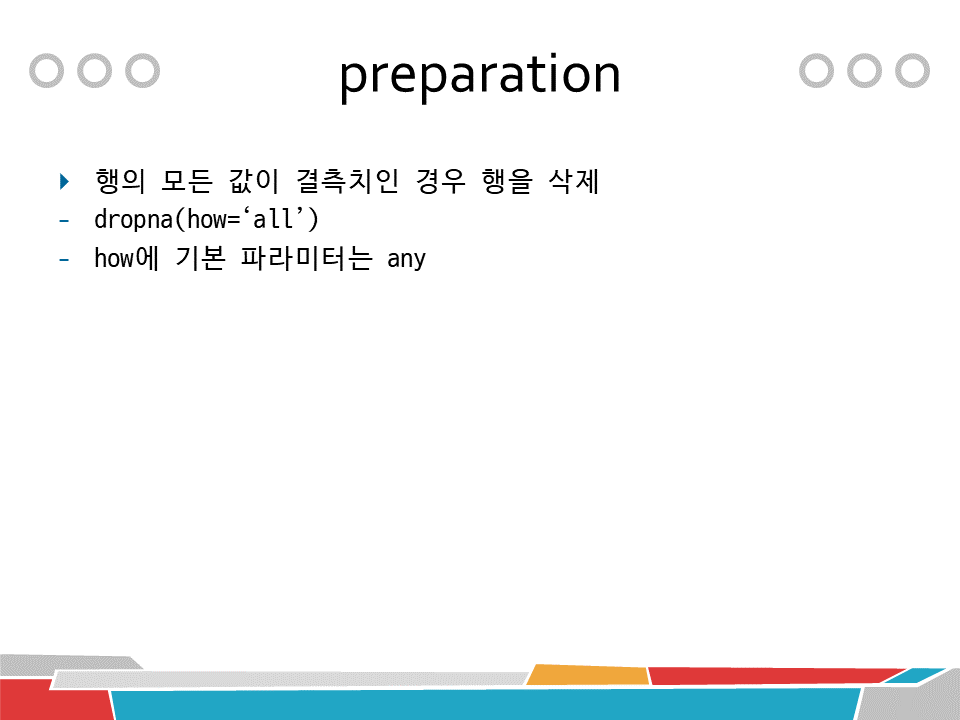 # 행의 모든 값이 결측치 일시 행을 삭제