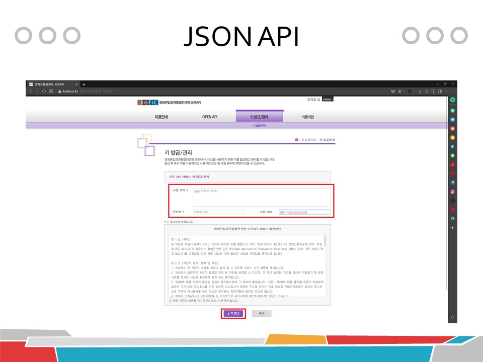 # 영화 진흥원에서 발급받은 API키