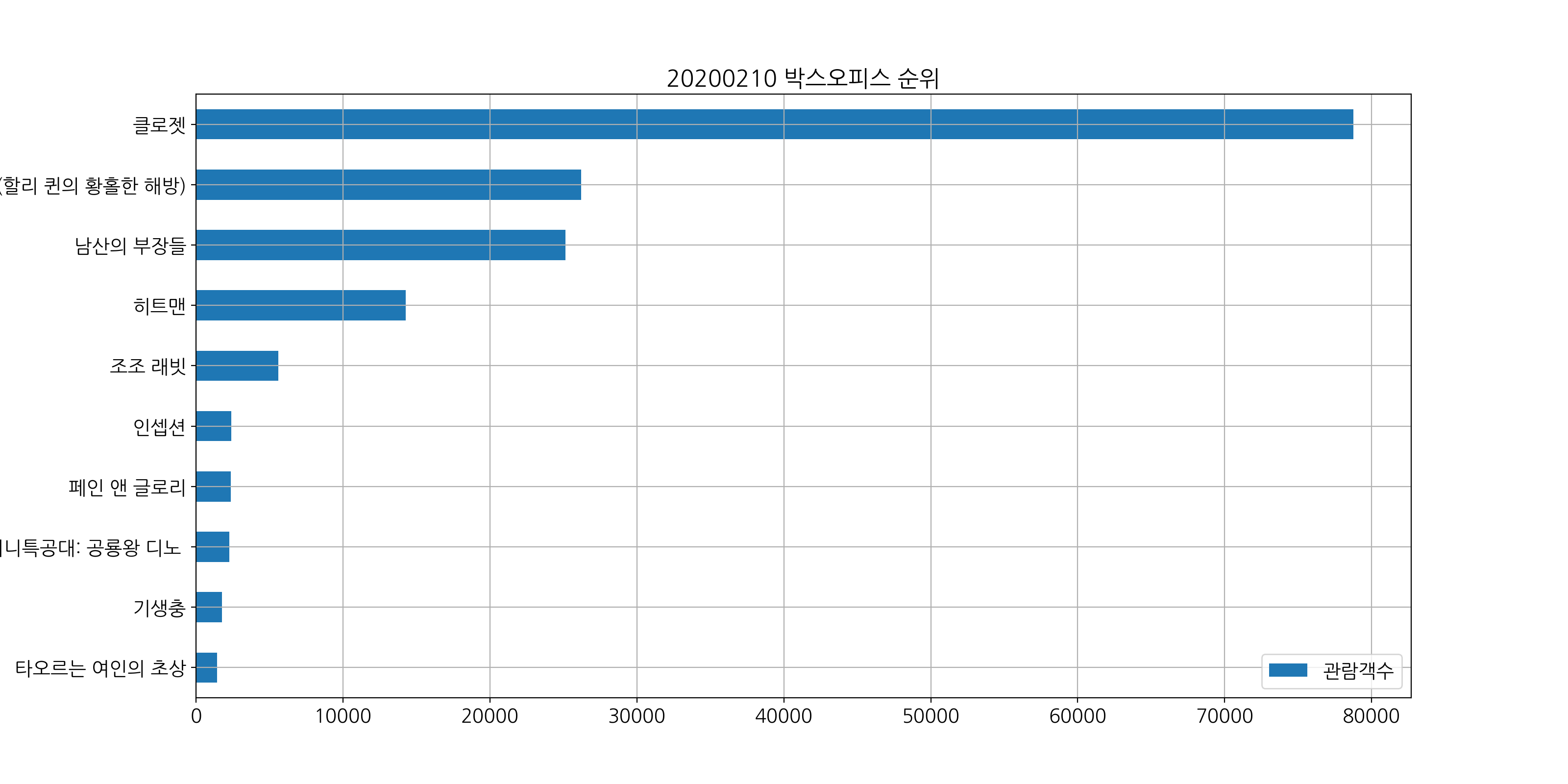 # 영화제목과 관람객수만 필터링 -> 막대그래프 생성