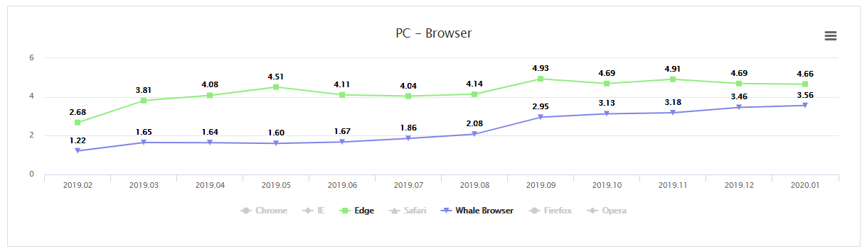 새로나온 웨일 브라우저랑 보면 점점 따라잡히는것을 볼 수 있다.