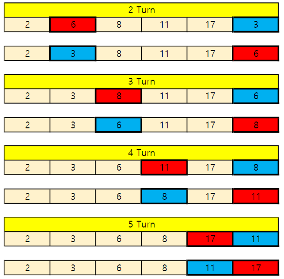 3. 맨 앞의 위치를 뺀 나머지 데이터를 동일한 방법으로 반복함