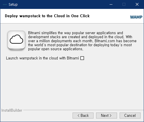 Lanch wampstack in the cloud with Bitnami 체크 해제