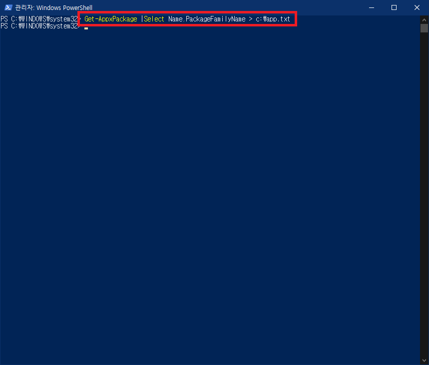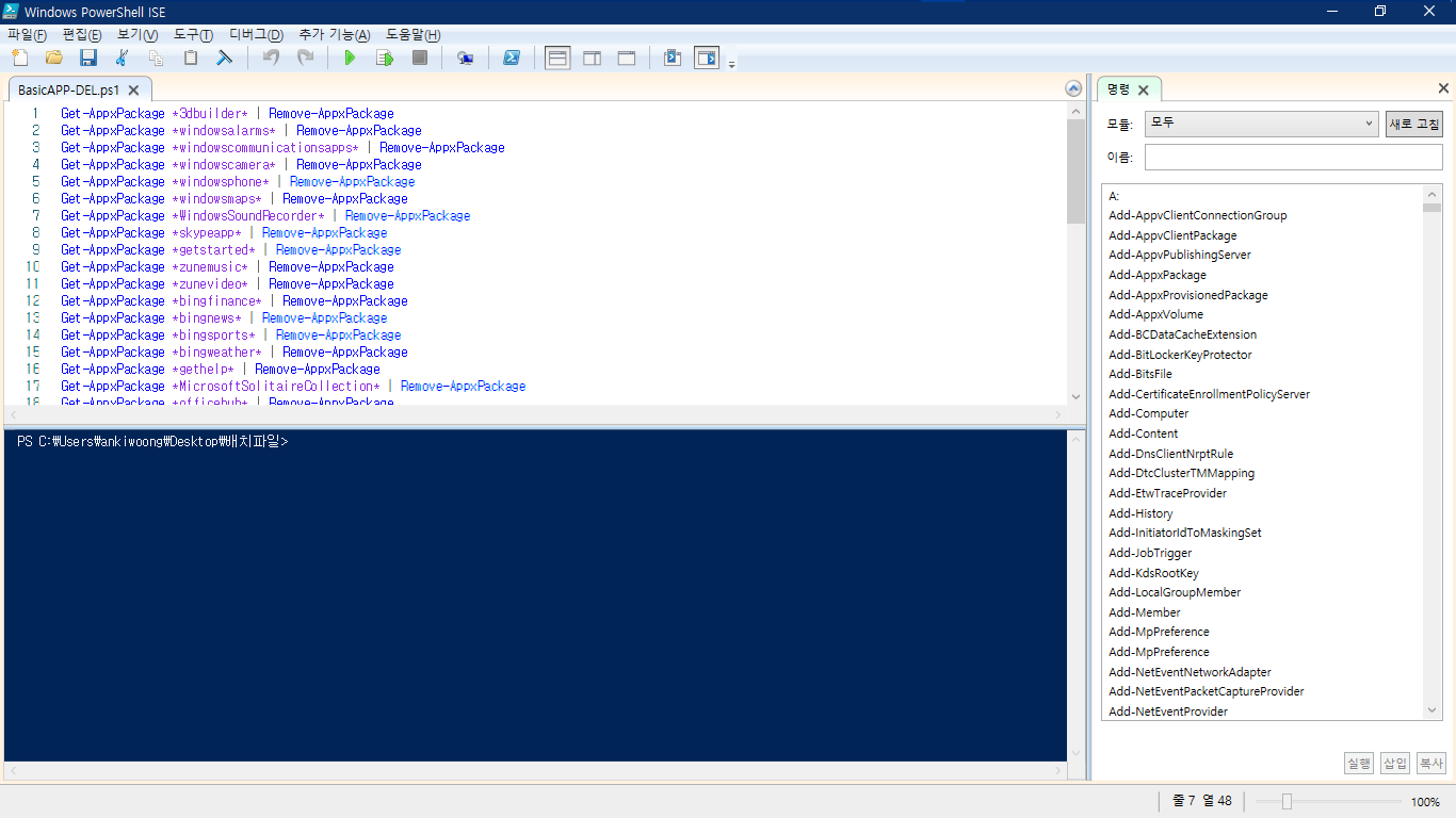 Get-AppxPackage *지울 앱 이름* | Remove-AppxPackage