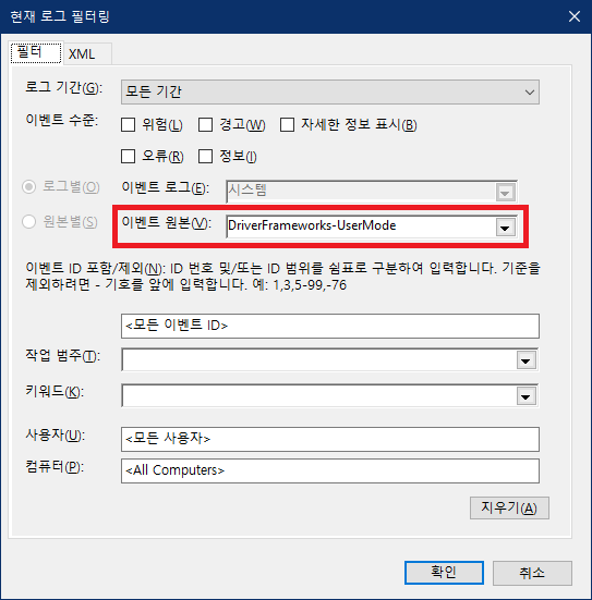 이벤트 원본 > DriverFrameworks-UserMode