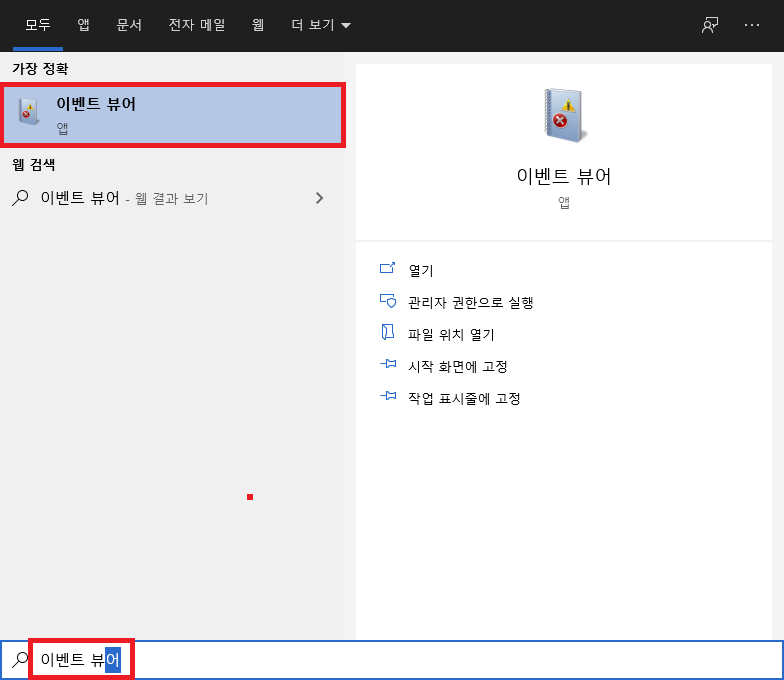 시작 > 이벤트 뷰어