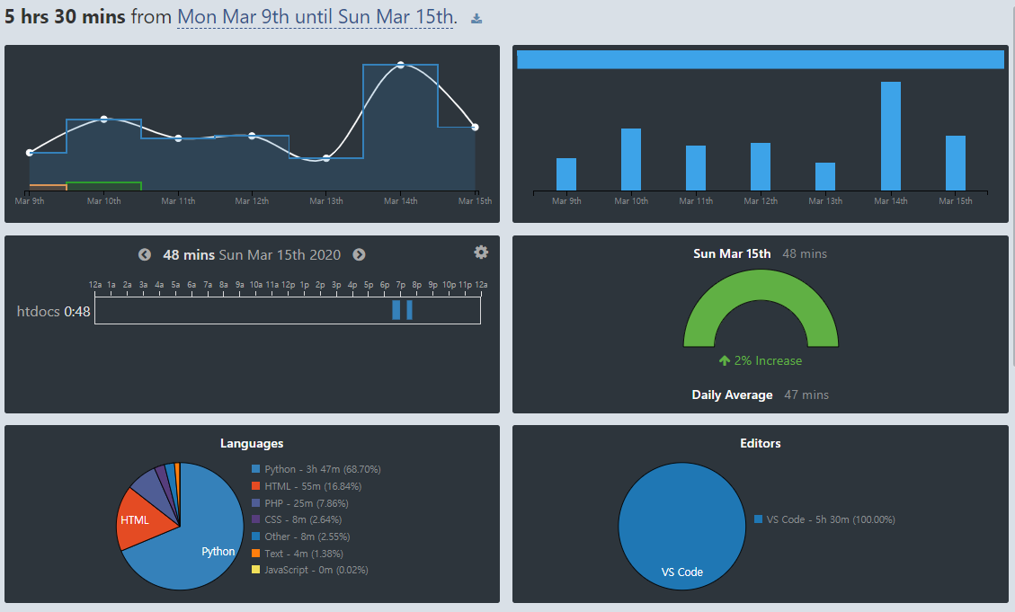 WakaTime 20.03.09 ~ 20.03.15