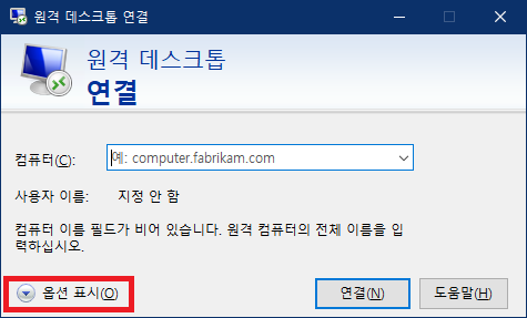 원격 데스크톱 > 옵션 표시