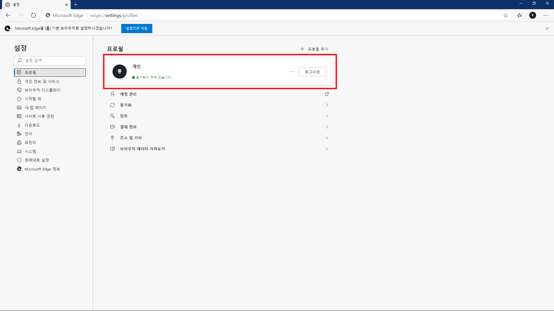 2. 엣지 브라우저 셋팅