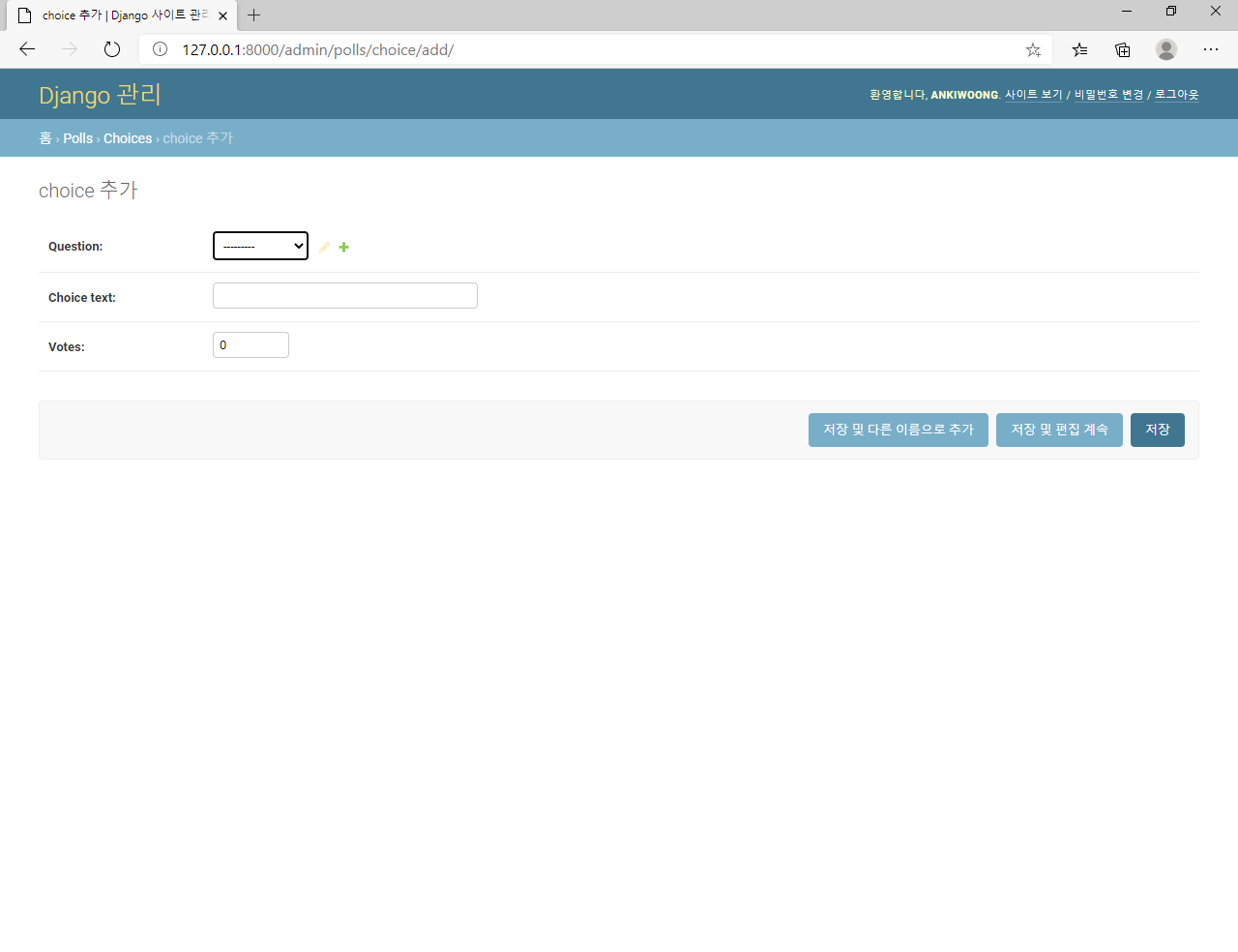 6. Choice를 관리자에게 등록