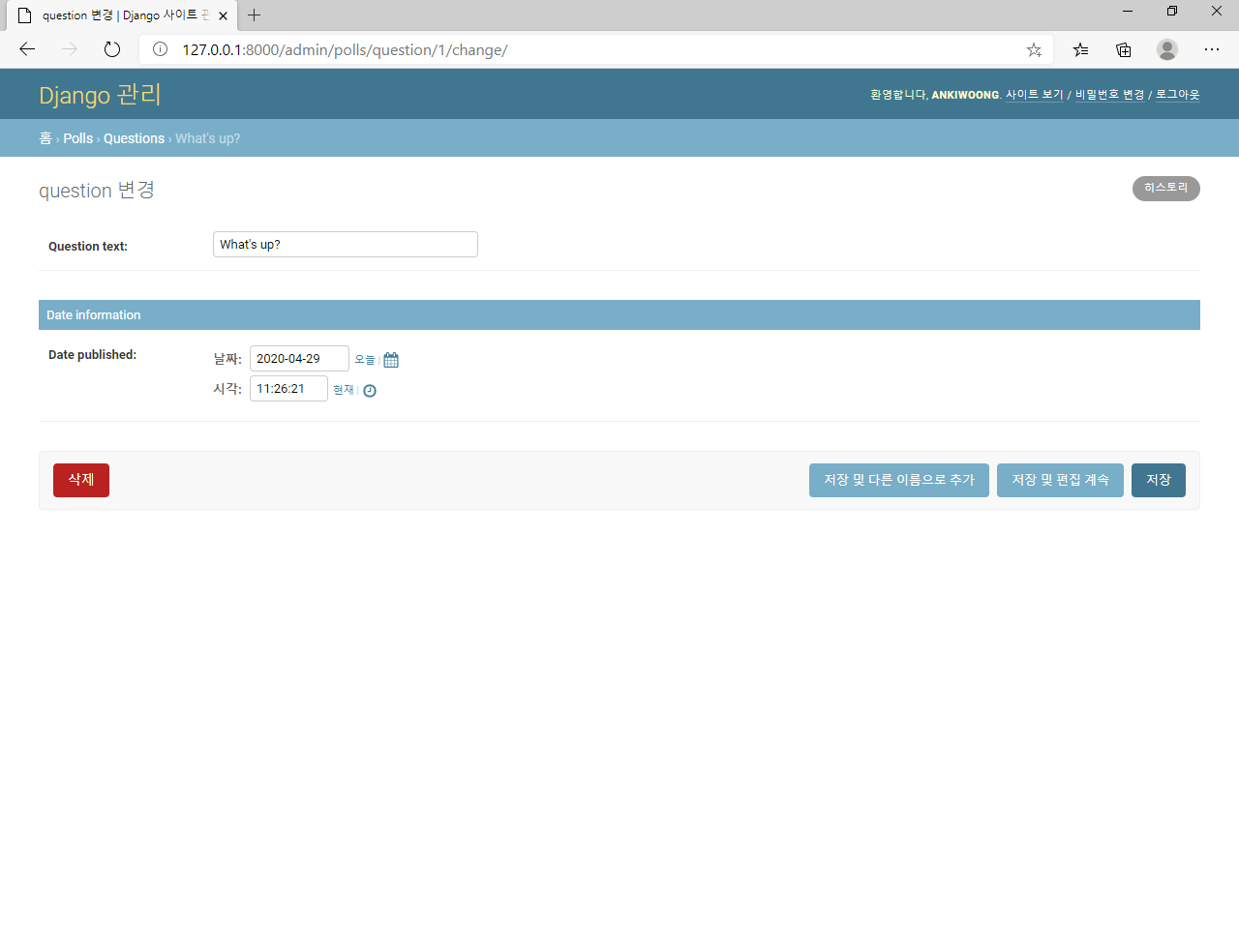 https://docs.djangoproject.com/ko/3.0/intro/tutorial07/