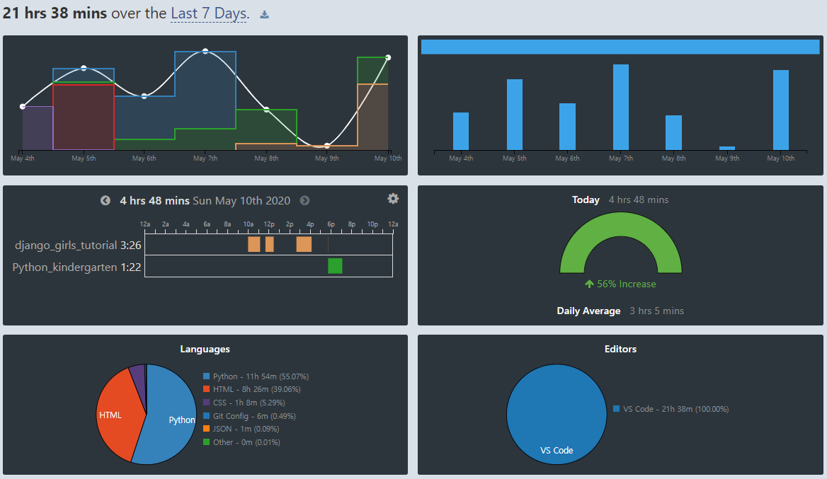 [WakaTime]Week 5 of April(20.04.27 ~ 20.05.03) (0) | 2020.05.10 |