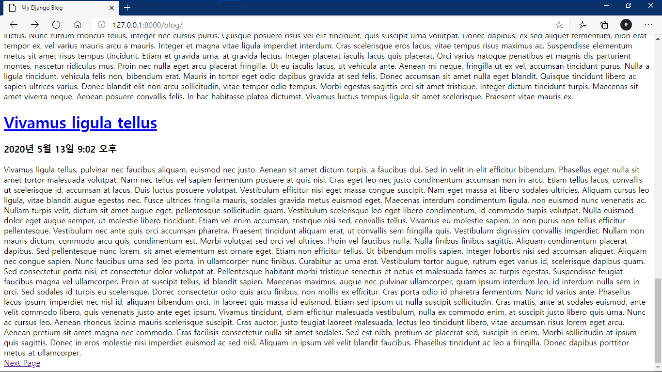 메인 화면에 블로그 포스트 내용은 5개만 보이게 하고 페이지를 나눈다.