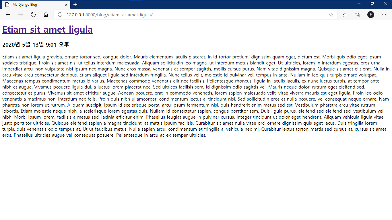 | 제목이 한글이면 슬러그 처리시 오류가 발생 하므로 str을 줘서 강제 형변환을 준다. |