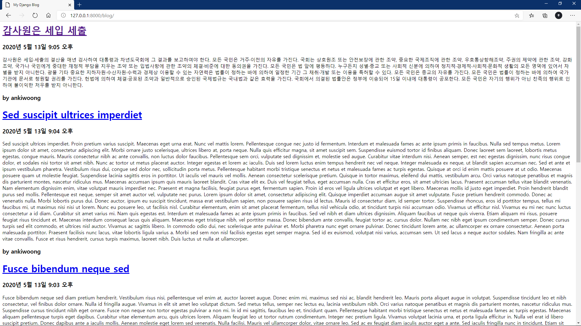 | [Django]Blog Creation Tutorial(Translation/Correction) 1 (0) | 2020.05.12 |