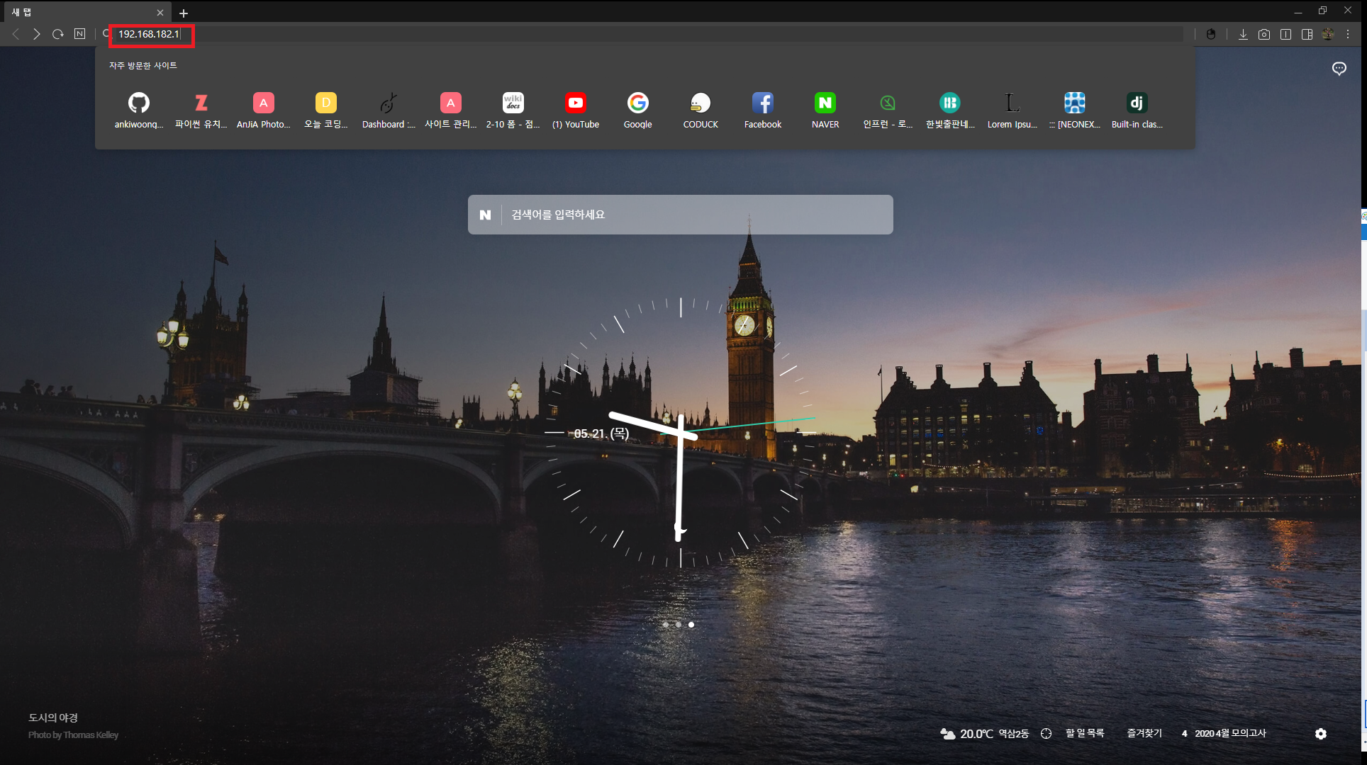 4. 익스플로러 주소창에 기본 게이트 웨이 입력