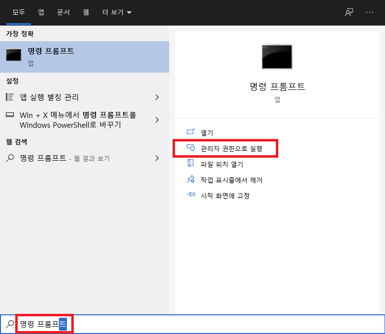 2. 시작 > 명령 프롬프트