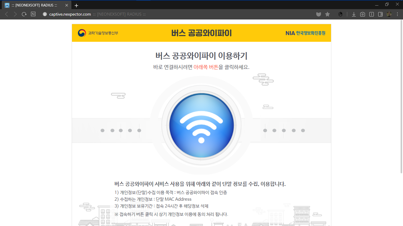 5. 버스 공공와이파이 화면 에서 와이파이 버튼 클릭