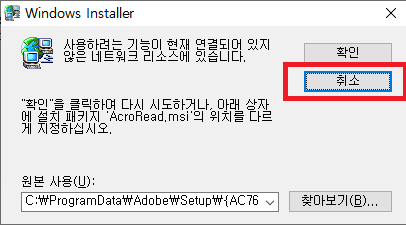 Adobe Reader를 설치를 하면 아래와 같은 에러 문구(12010)가 뜬다.