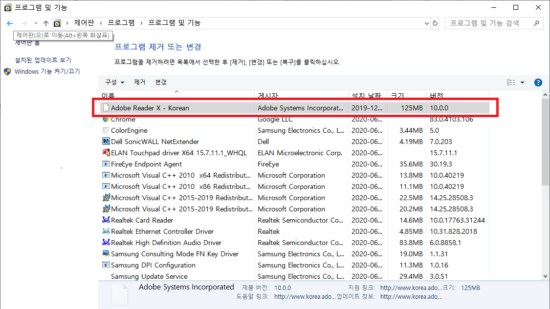 Adobe Reader 강제 삭제 툴로 작업을 진행 후 다시 재설치를 하면 간단하게 수정이 가능하다.