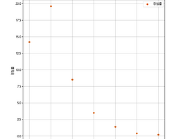 1. 그래프 단계(셀로판지 개념)1단계 : 배경 설정(축)2단계 : 그래프 추가(점, 막대, 선)3단계 : 설정 추가(축 범위, 색, 표식) 2. Sample Data Baseage = [10, 20, 30, 40, 50, 60, 70] retv = [14.2, 19.6, 8.5, 3.5, 1.4, 0.4, 0.2] 3. Sample Codefrom matplotlib import pyplot age = [10, 20, 30, 40, 50, 60, 70] retv = [14.2, 19.6, 8.5, 3.5, 1.4, 0.4, 0.2] pyplot.rcParams["font.family"] = 'Malgun Gothic' pyplot.rcParams["font.size"] = 12 pyplot.rcPara..