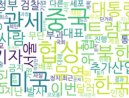 현재 뉴스에서 많이 사용중인 키워드 분석 시각화 모듈WordCloud를 활용하여 시각화190506 키워드 분석 시각화 현재 키워드>'중국': 93, '협상': 88, '미국': 79, '관세': 75, '한국': 64, '북한': 52, '트럼프': 52, '무역': 46, '대통령': 43, '기자': 41, '사람': 34, '이번': 32, '대한': 31, '위협': 31, '서울': 31, '산업': 31, '정부': 29, '추가': 29, '정책': 28, '대표': 28, '검찰': 27, '달러': 25, '지난': 24, '발사': 24, '부과': 24, '통해': 23, '무단': 23, '배포': 23, '금지': 23, '인상': 23, '세포': 23, '상황': 22, '다른..
